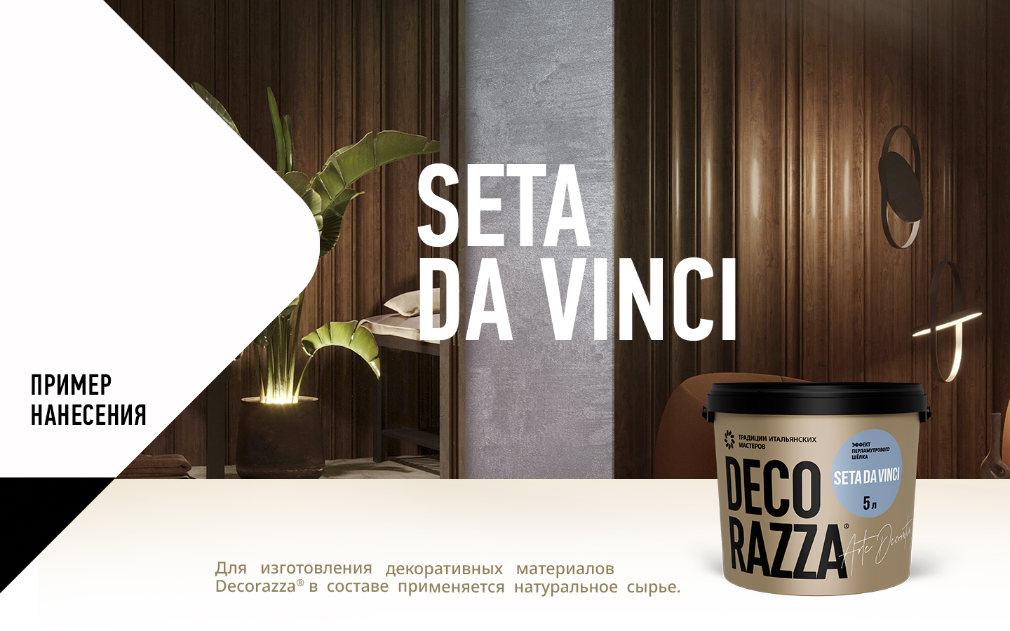 От официального дилера в Тольятти предлагаем Декоративное покрытие SETA DA VINCI - Декоративная штукатурка для создания эффекта с имитацией нежной натуральной ткани на стенах, потолках и архитектурных элементах от бренда: Decorazza