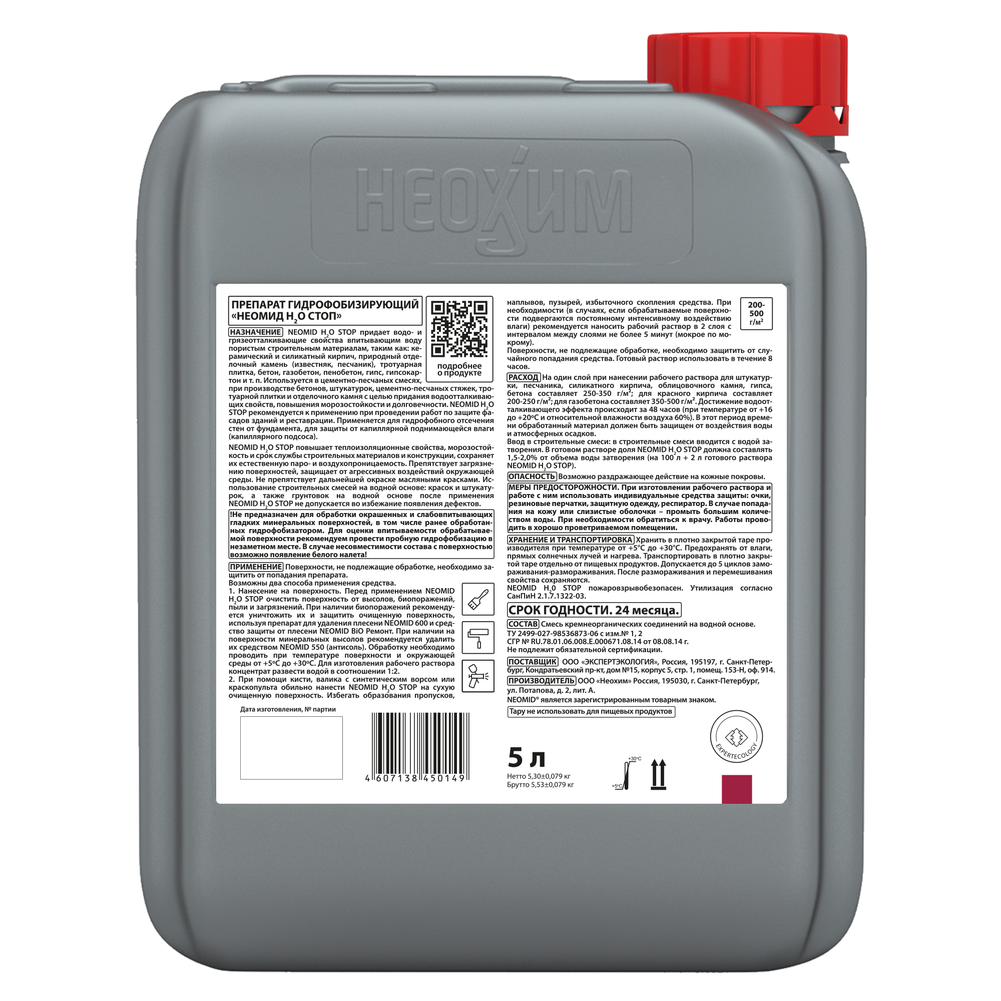 От официального дилера в Тольятти предлагаем Гидрофобизатор Neomid H2O-Stop - Гидрофобизатор-влагоизолятор - пропитка по камню NEOMID H2О STOP(концентрат) для придания водо- и грязеотталкивающих свойств впитывающим воду пористым строительным материалам, таким как: облицовочный и силикатный кирпич, искусственный и природный отделочный камень от бренда: Neomid