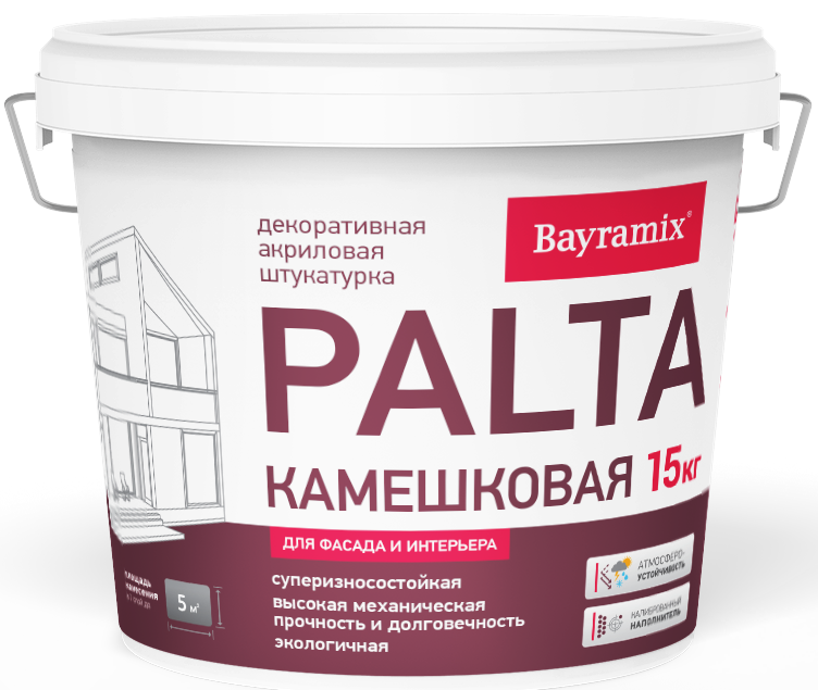 От официального дилера в Тольятти предлагаем Камешковая штукатурка Palta средний - Атмосферостойкая камешковая декоративная штукатурка для внутренних и наружных работ от бренда: Bayramix