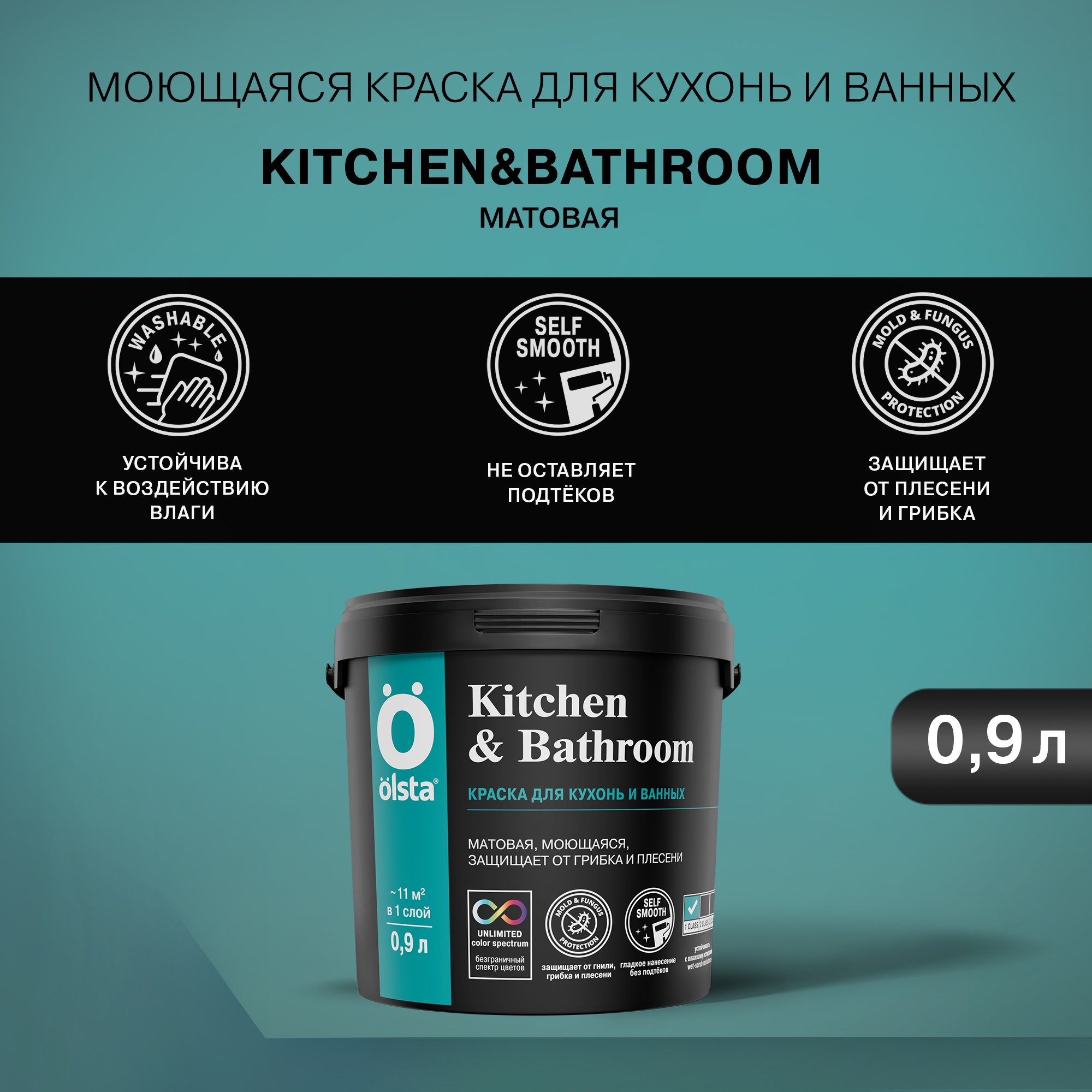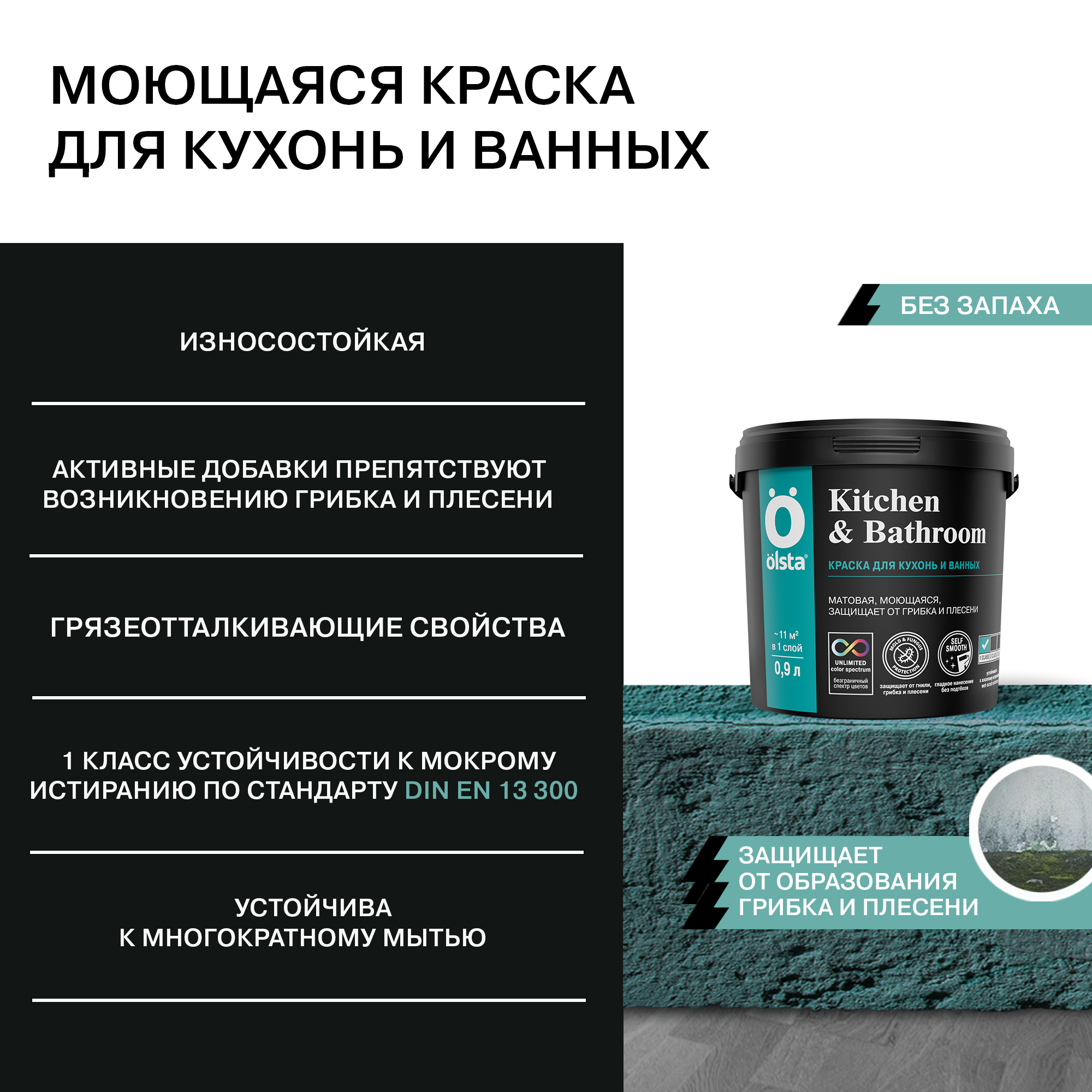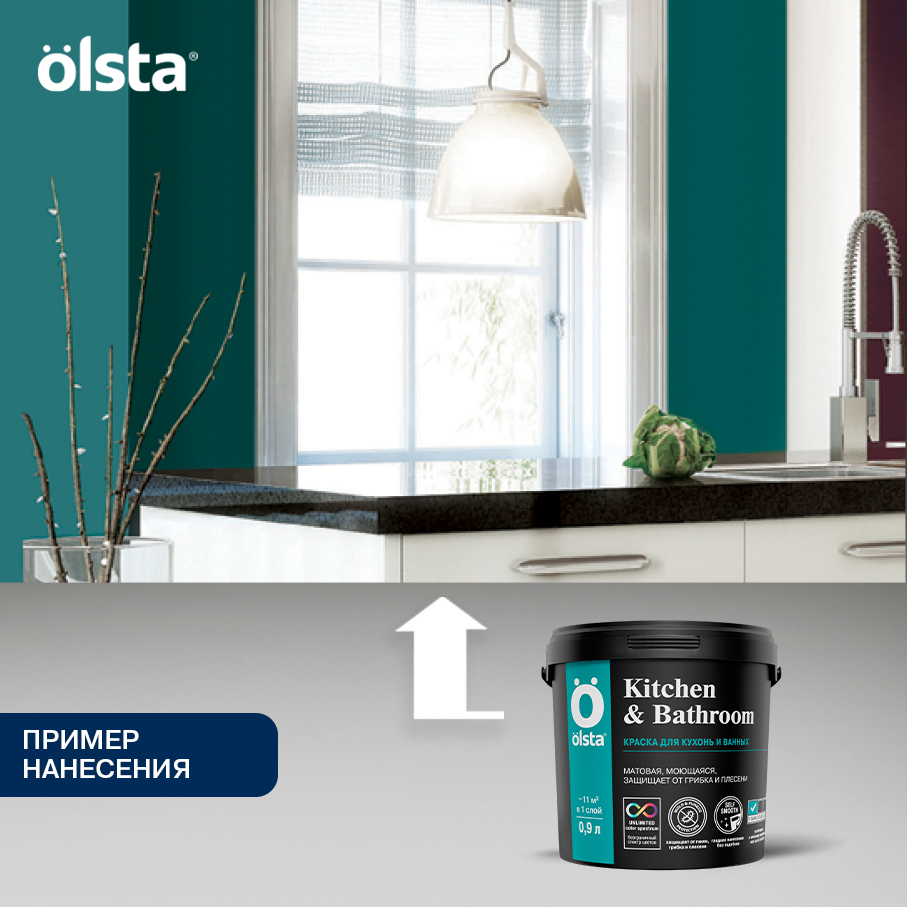 От официального дилера в Тольятти предлагаем Краска для кухонь и ванных Kitchen&bathroom - Высококачественная моющаяся интерьерная краска с повышенной износостойкостью от бренда: OLSTA
