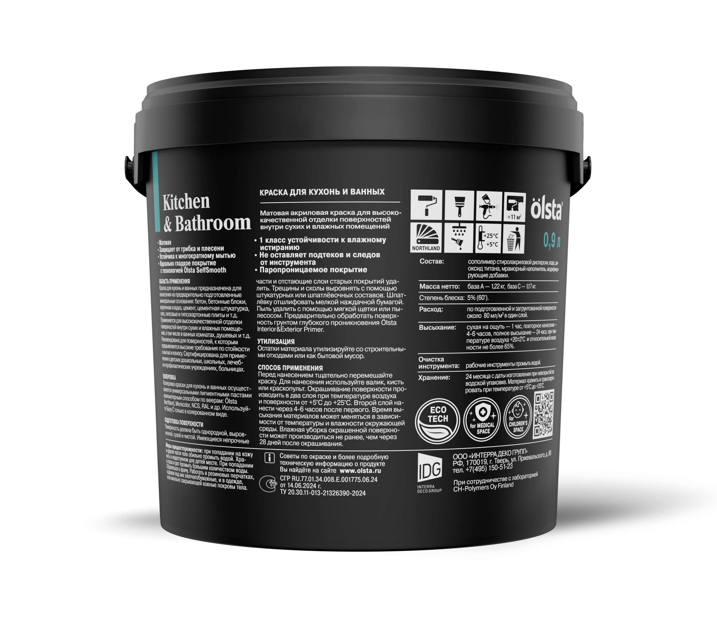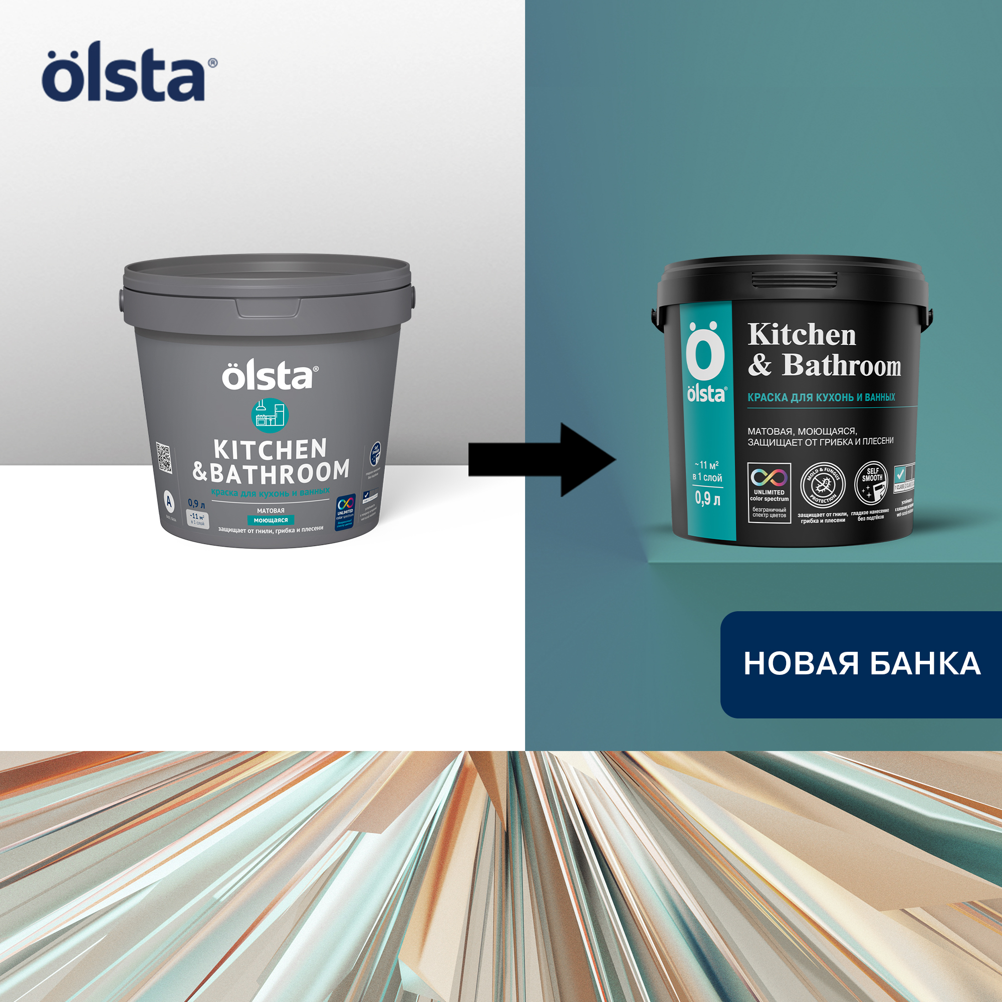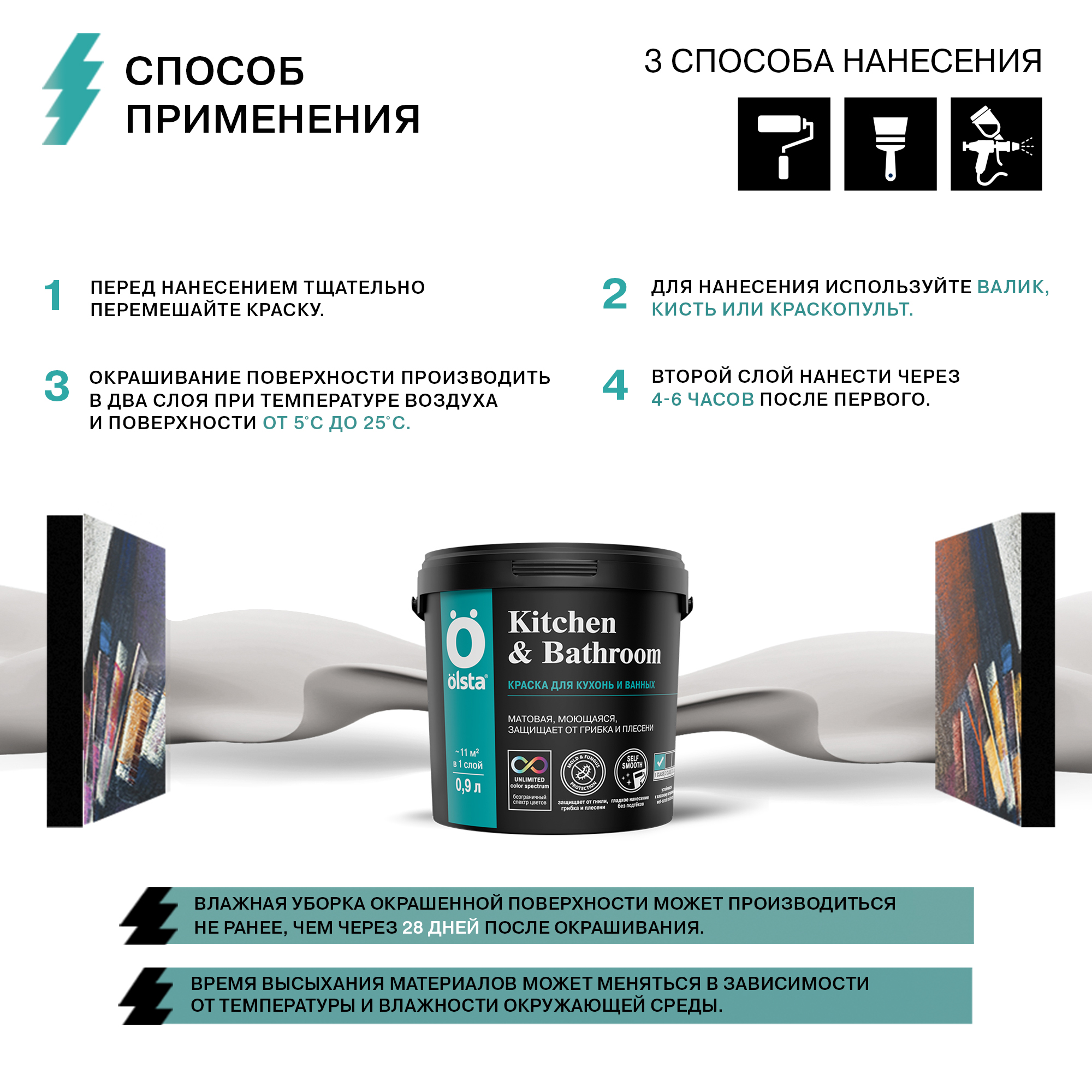 От официального дилера в Тольятти предлагаем Краска для кухонь и ванных Kitchen&bathroom - Высококачественная моющаяся интерьерная краска с повышенной износостойкостью от бренда: OLSTA
