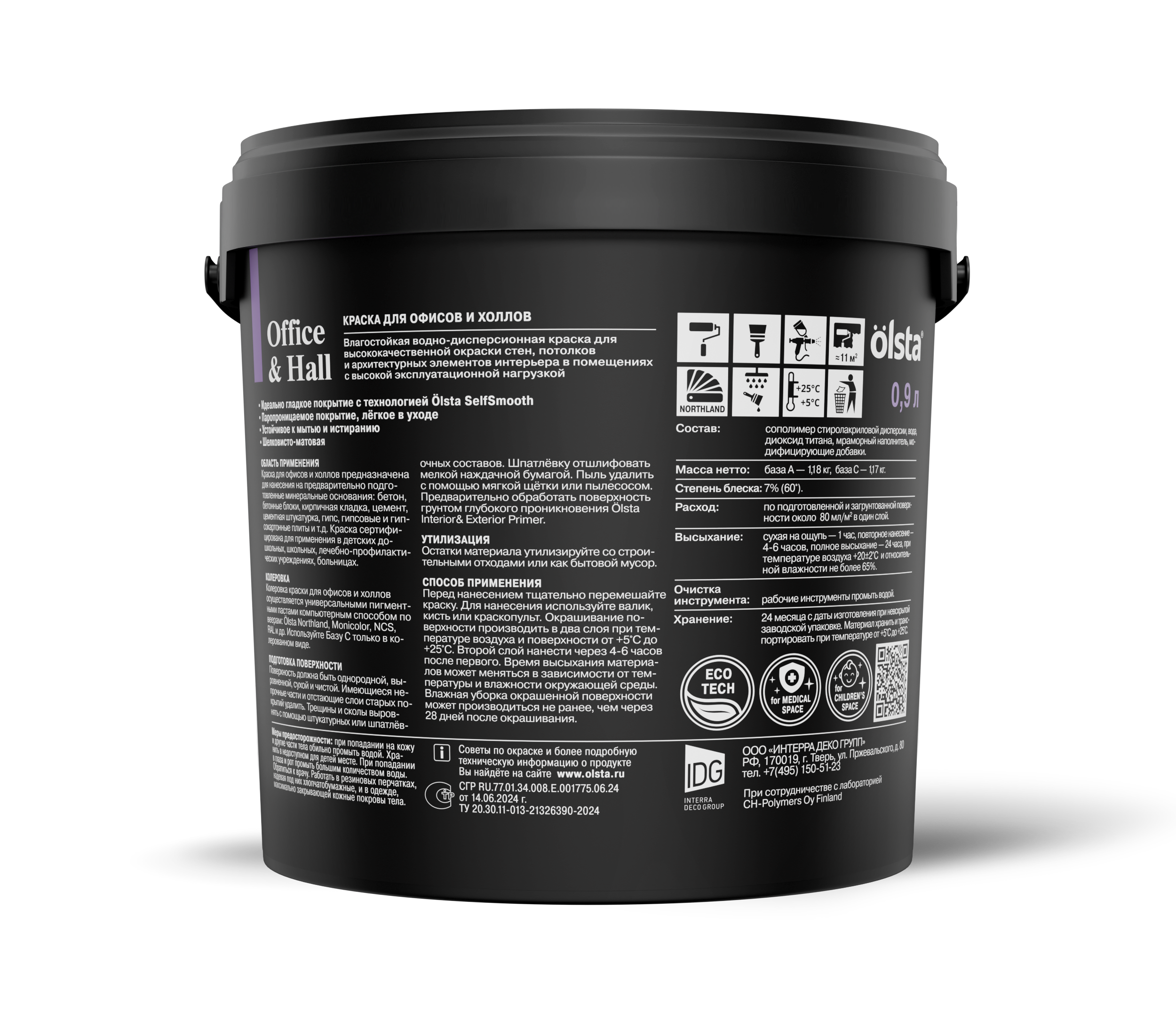 От официального дилера в Тольятти предлагаем Краска для офисов и холлов Office&hall - Акрилатная интерьерная краска для окраски стен и потолков в помещениях, от поверхностей которых требуется стойкость к мытью и износу от бренда: OLSTA