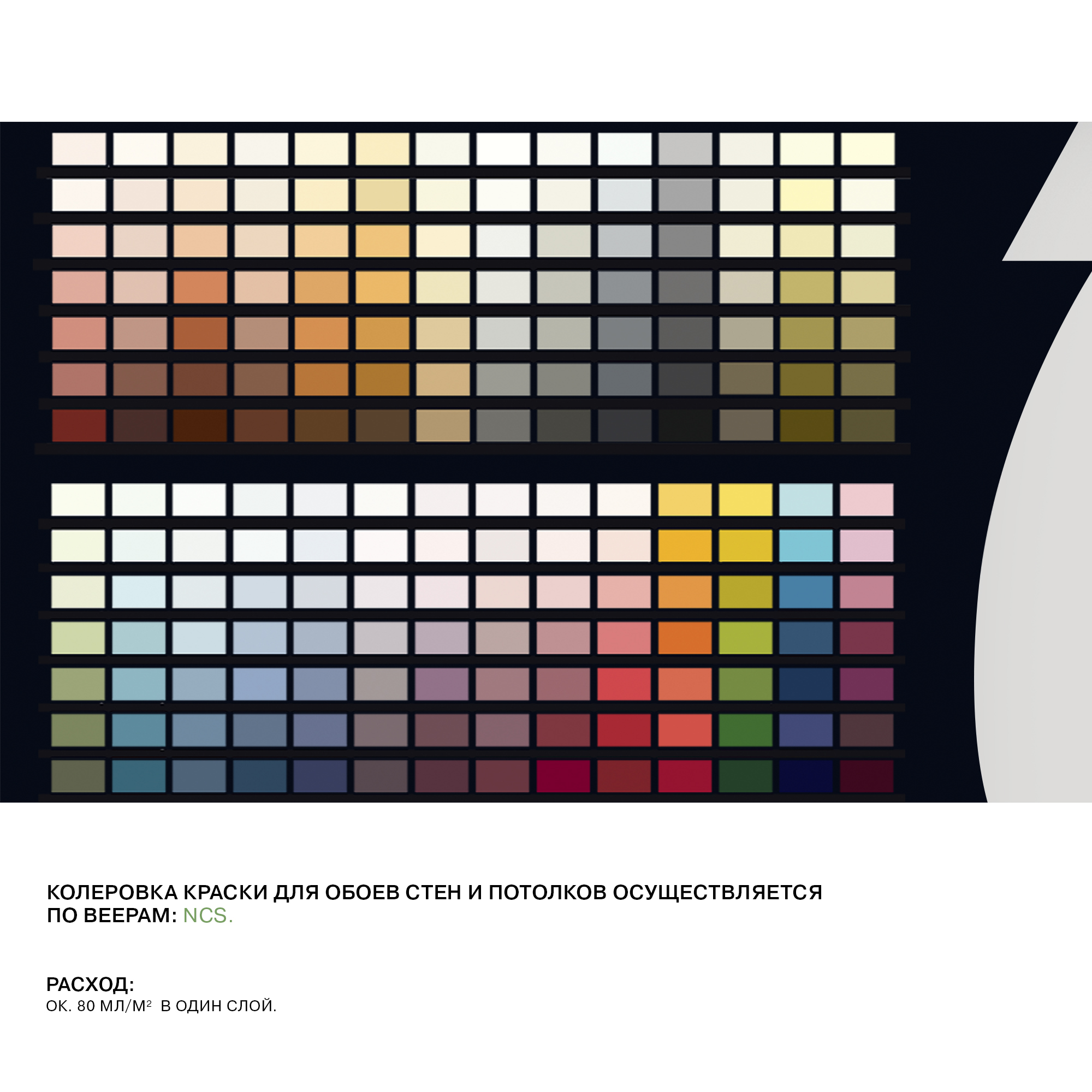 Цвета: | Белый; Основа C - для колеровки в насыщенные тона, компьютерная колеровка по согласованию. |