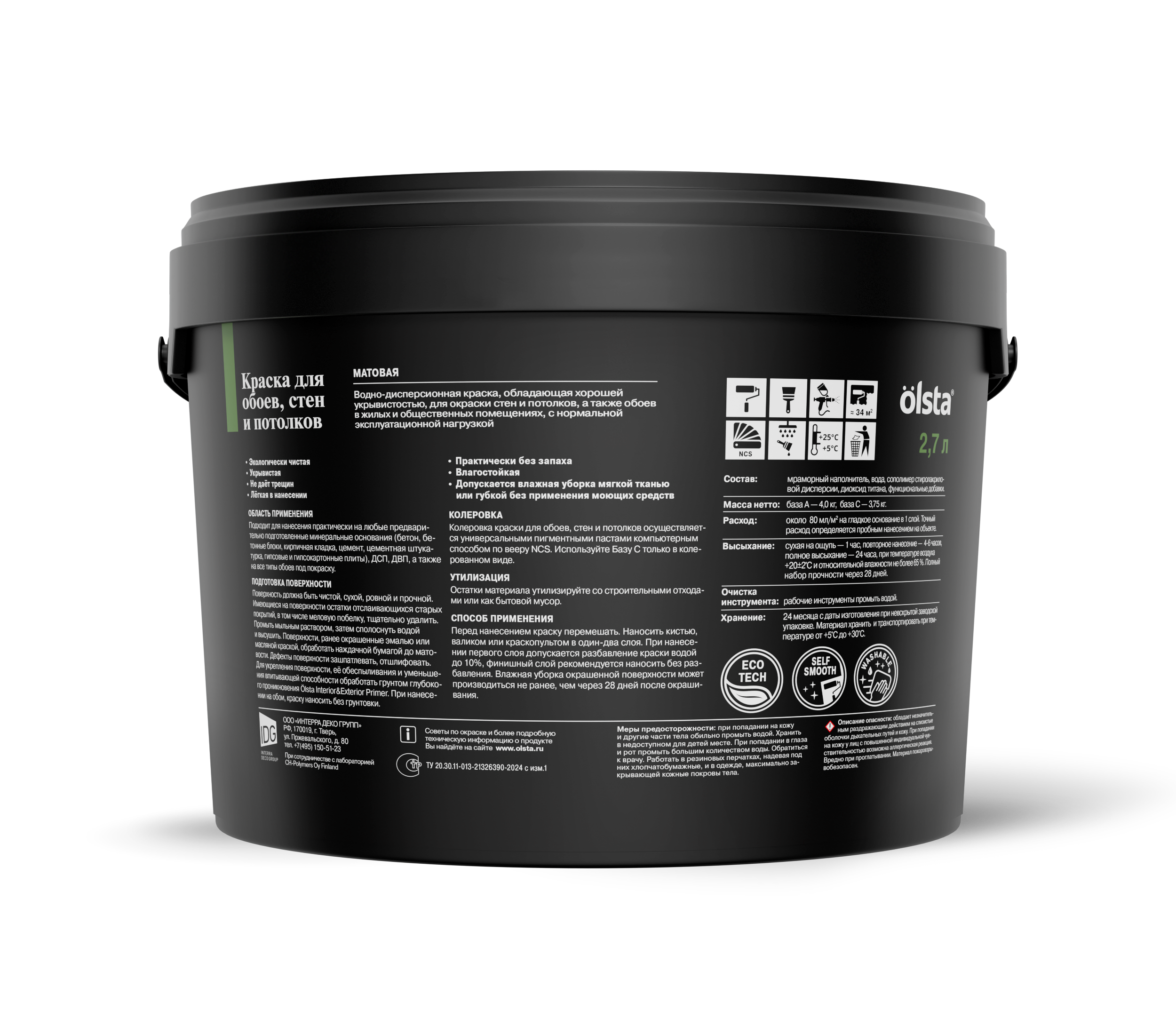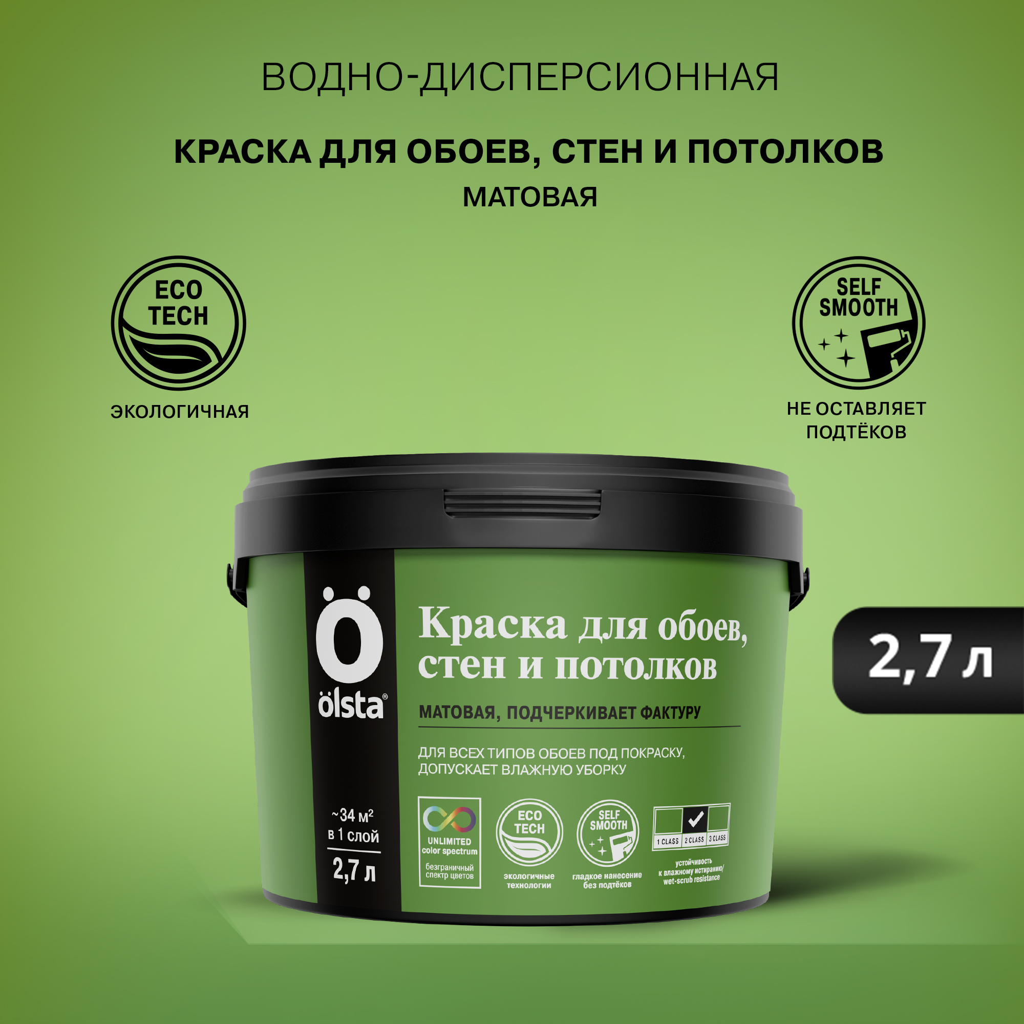 От официального дилера в Тольятти предлагаем Краска для стен, обоев и потолков - Водно-дисперсионная краска, обладающая хорошей укрывистостью, предназначена для внутренней окраски стен и потолков, а также обоев в жилых и общественных помещениях, с нормальной эксплуатационной нагрузкой. Подходит для нанесения практически на любые предварительно подготовленные минеральные основания (бетон, бетонные блоки, кирпичная кладка, цемент, цементная штукатурка, гипсовые и гипсокартонные плиты), ДСП, ДВП, а также на все типы обоев под покраску. от бренда: OLSTA