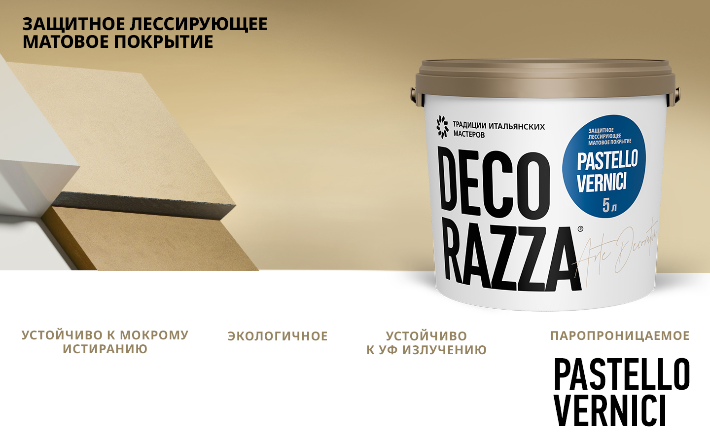 От официального дилера в Тольятти предлагаем Лессировка матовая PASTELLO VERNICI - Матовый лессирующий состав для декоративной штукатурки от бренда: Decorazza