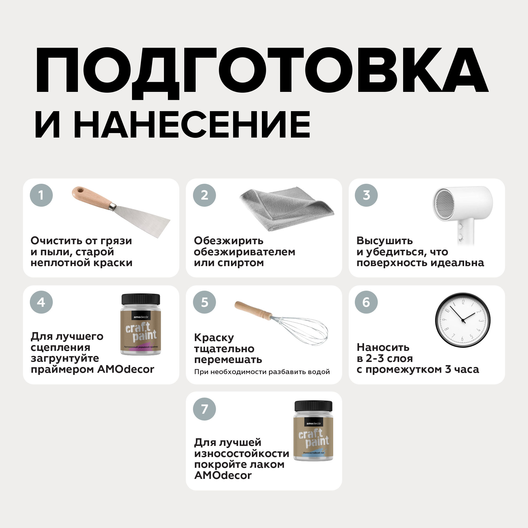 От официального дилера в Тольятти предлагаем Меловая краска для мебели АМОdecor - Меловая краска для мебели АМОdecor — это идеальный выбор для обновления вашего интерьера! Благодаря своей мебельной природе и использованию на водной основе, она обеспечивает легкость нанесения и быстрый процесс высыхания. Отличительной чертой этой краски является её экологичность и отсутствие запаха, что делает её безопасным решением для внутренних работ в жилых и офисных пространствах. Матовый финиш АМОdecor позволяет добиться нежного и благородного вида поверхности, подчеркивая детали декора и создавая уютную атмосферу. Её декоративная способность открывает простор для творчества, позволяя вам создавать уникальные дизайнерские решения и трансформировать любую мебель в произведение искусства. Эко-подход и простота использования делают эту краску незаменимым инструментом для всех, кто ценит качество и заботу о природе. от бренда: AMO