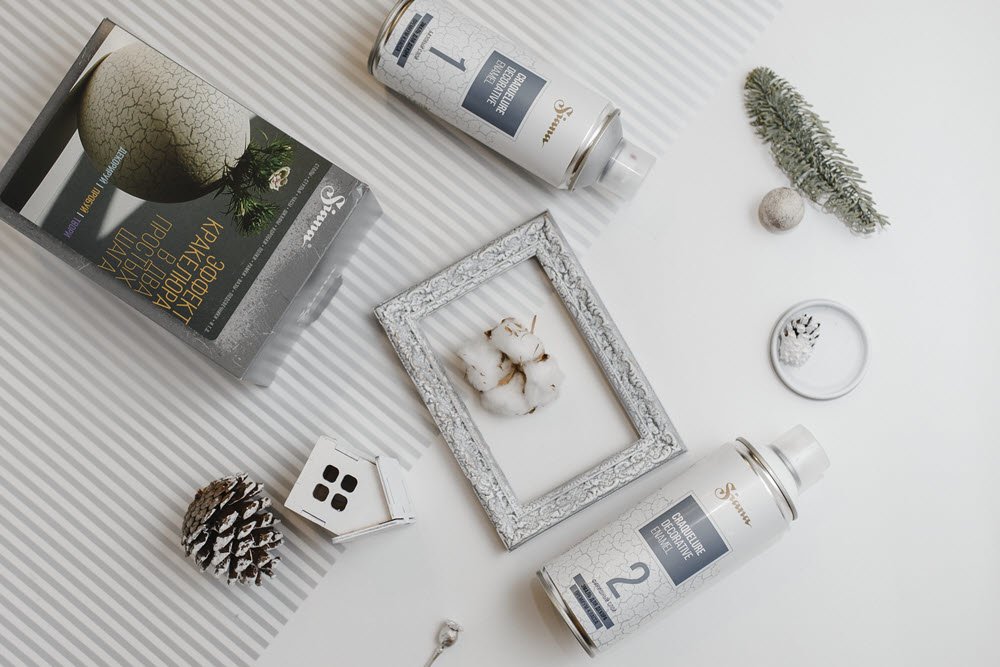 «Кракелюр» — эффект растрескавшейся краски. Ранее образовывался только с течением длительного времени. Набор для декора Siana Craquelure позволяет создать эффект трещин быстро и самостоятельно .
