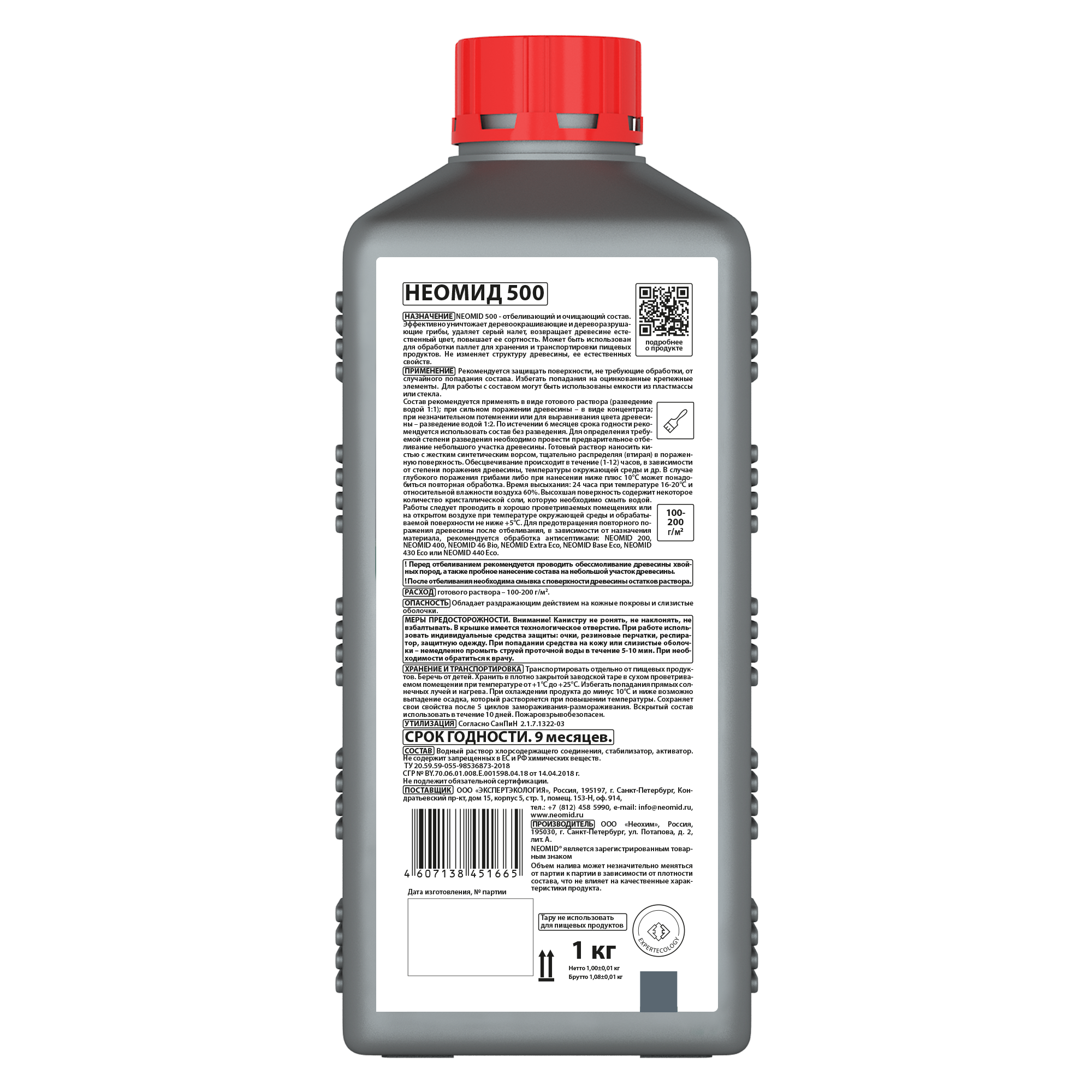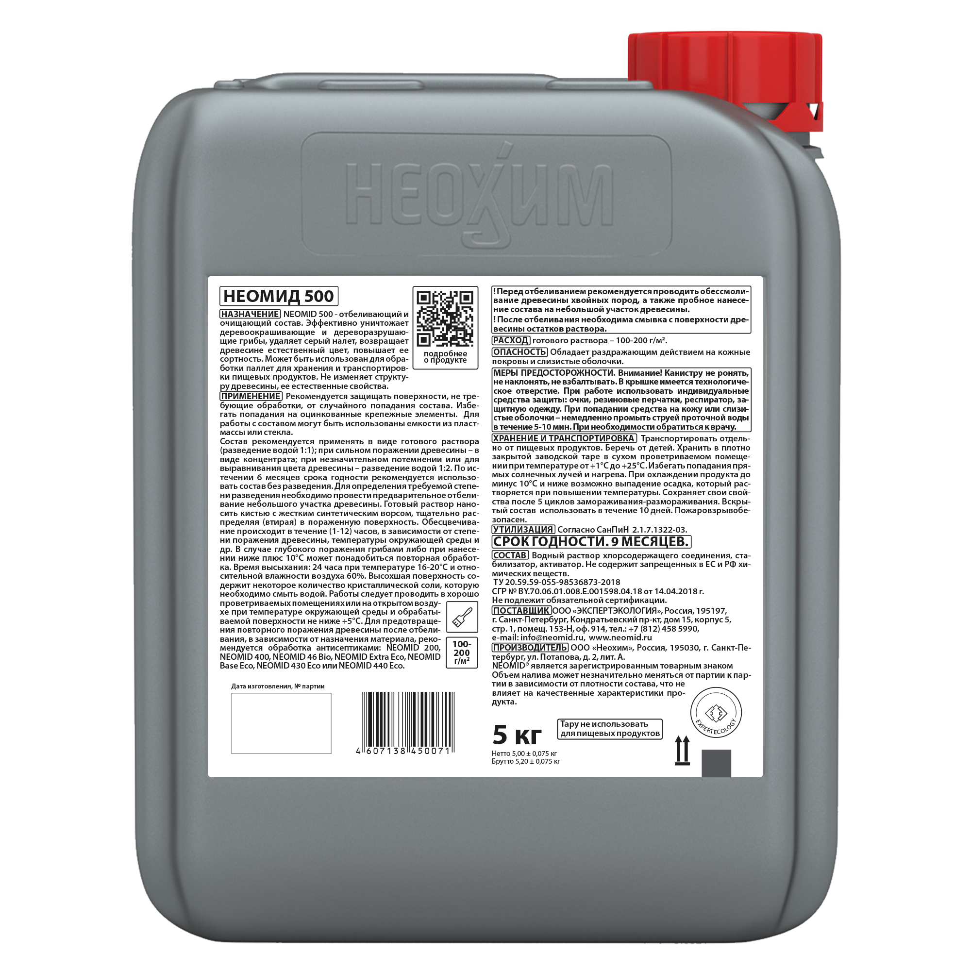NEOMID 500 – отбеливающий и очищающий состав. Эффективно уничтожает деревоокрашивающие и дереворазрушающие грибы, удаляет серый налет, возвращает древесине естественный цвет, повышает ее сортность. Может быть использован для обработки паллет для хранения и транспортировки пищевых продуктов. Не изменяет структуру древесины, ее естественных свойств.