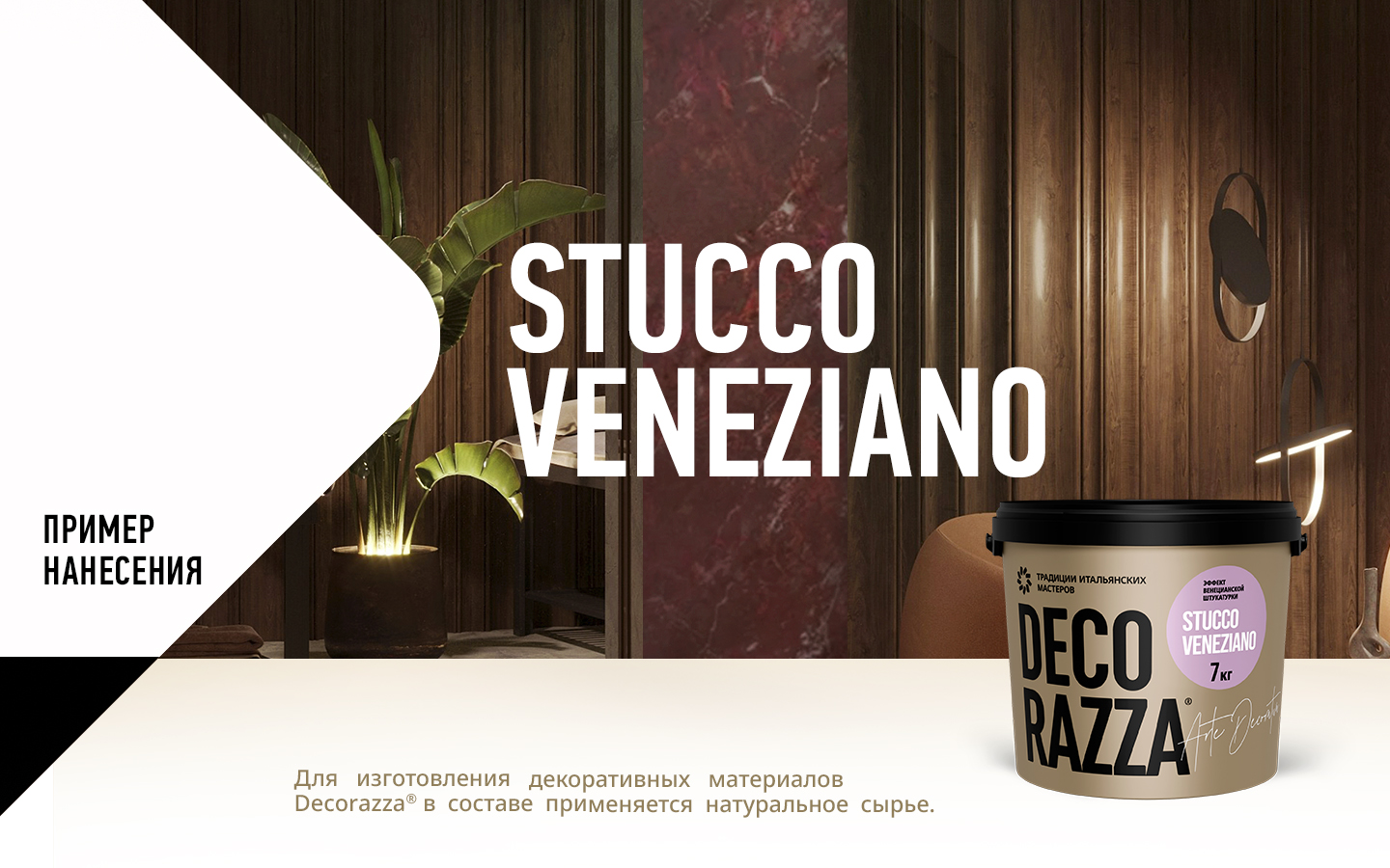 От официального дилера в Тольятти предлагаем Венецианская штукатурка Stucco Veneziano - Венецианская штукатурка премиум-класса с превосходными декоративными свойствами от бренда: Decorazza