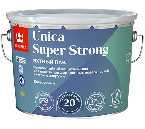 От официального дилера в Тольятти предлагаем Яхтный лак Unica Super Strong - Tikkurila Unica Super Strong лак яхтный. Износостойкий лак широкого спектра применения от бренда: Tikkivala