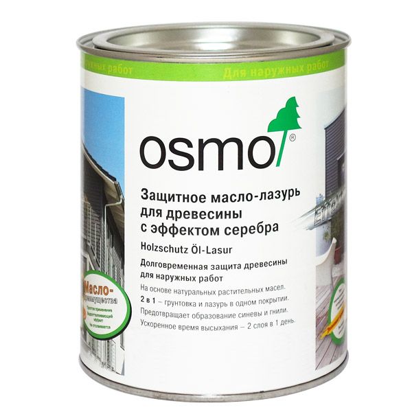 От официального дилера в Тольятти предлагаем Защитное масло-лазурь с эффектом серебра - Масло-лазурь для дерева для наружных работ с эффектом "металлик" от бренда: OSMO